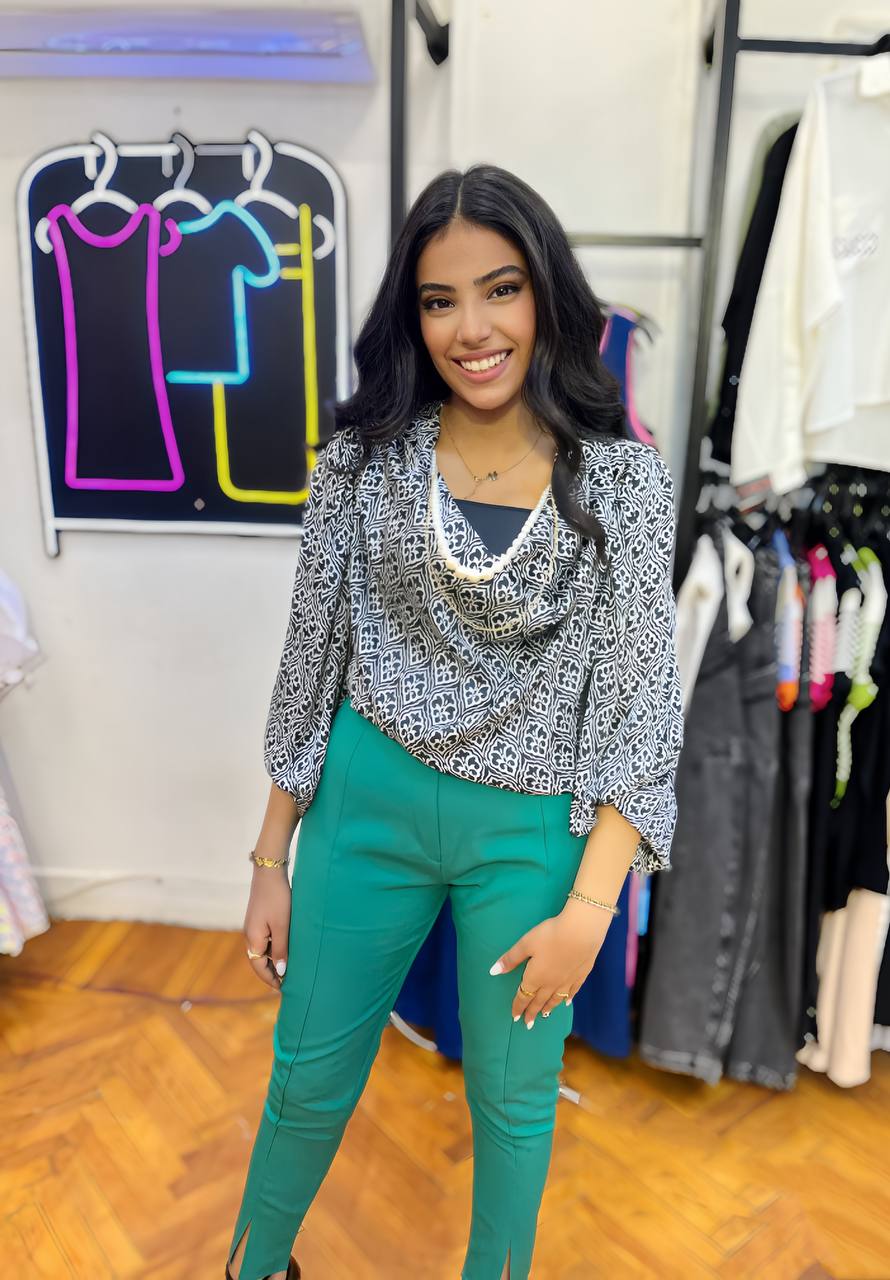 A versatile piece that pairs beautifully with trousers, jeans, or skirts for a chic and modern outfit.