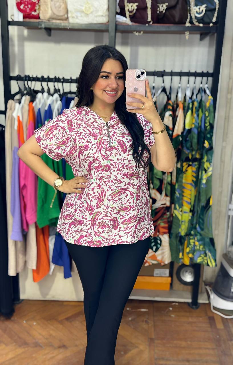 Breeze through your day in effortless style with this floral oversize blouse. Designed with a relaxed silhouette and lightweight fabric, it offers both comfort and a touch of elegance. The delicate floral print adds a feminine flair, while the loose fit makes it perfect for layering or wearing solo. Pair it with jeans, shorts, or tailored pants for an easy chic look