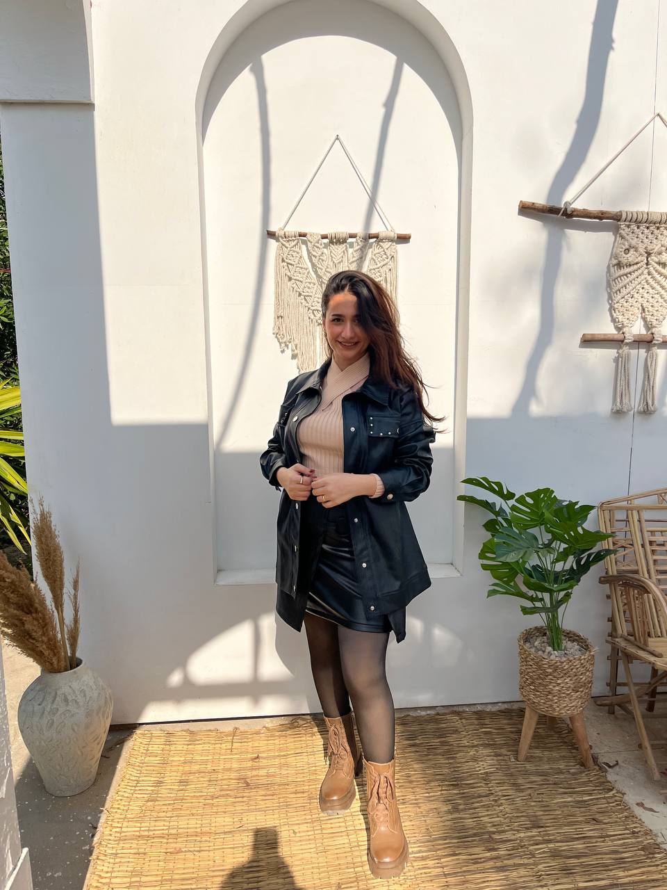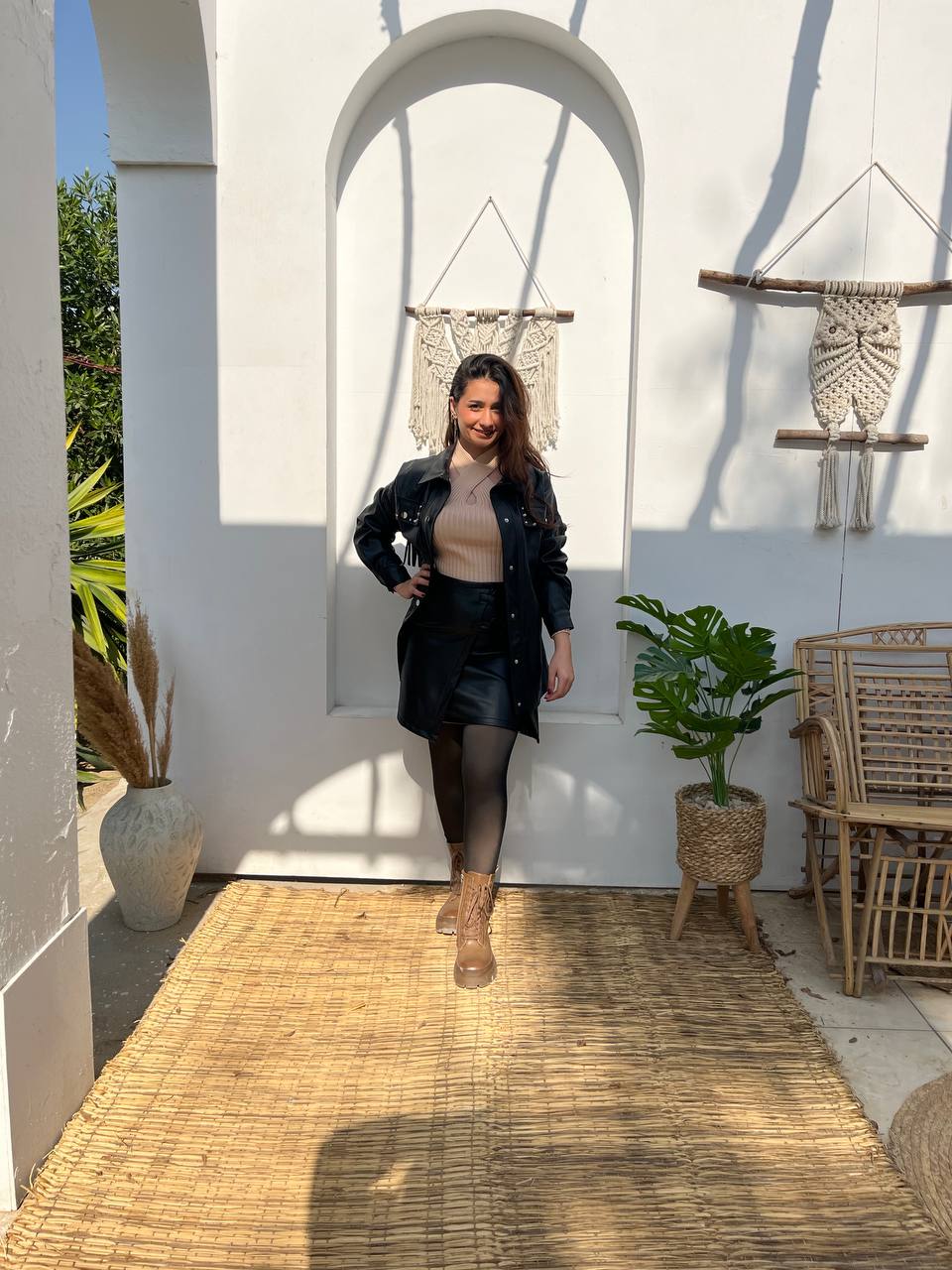 استعدي لإطلالة مميزة مع جاكيتنا الجلدي الطويل المطرز! مصنوع من جلد عالي الجودة، يتميز بتطريز متقن، سيلفت الأنظار بالتأكيد. تألقي بدفء وأناقة، وأبرزي أناقتكِ مع هذه القطعة الفريدة.