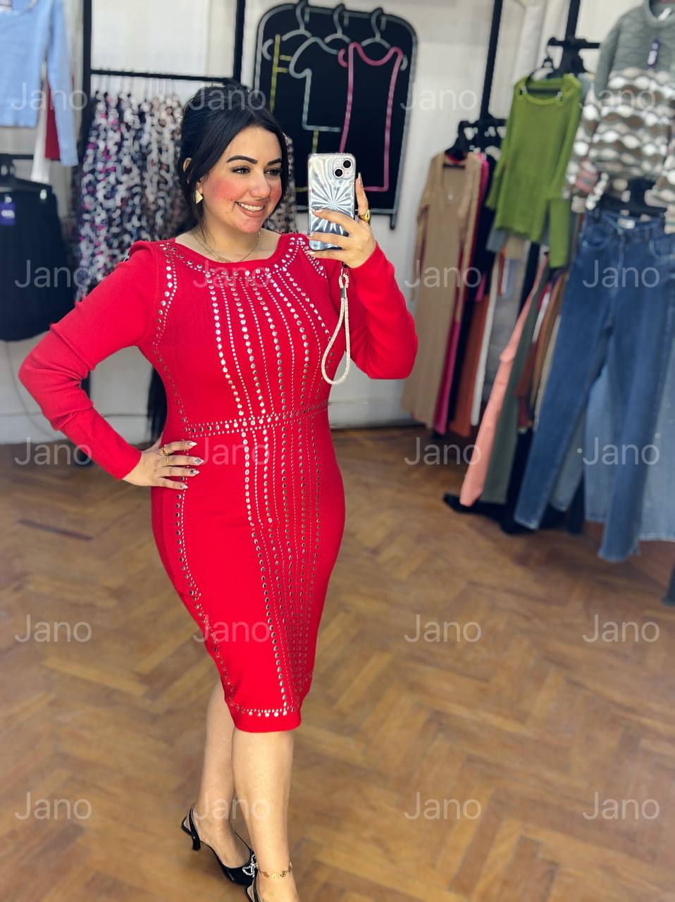 هذا الفستان المحبوك العصري والأنيق يتميز بتفاصيل أزرار فضية جذابة، مما يضفي لمسة من الأناقة على أي إطلالة. حافظي على أناقتكِ وراحتكِ مع هذه القطعة متعددة الاستخدامات. مثالي لأي مناسبة، ارتديه بكل سهولة. تألقي بهذا الفستان الفريد والأنيق.