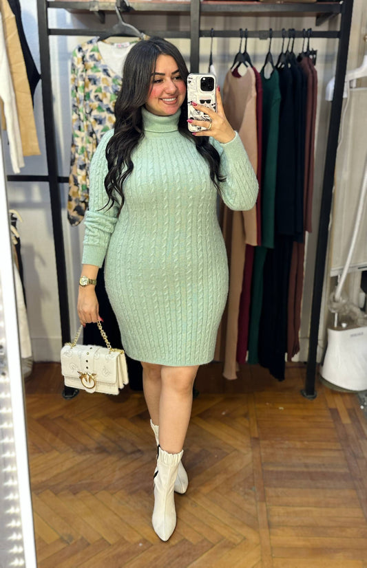 Sold outHigh Neck Cable Knit Mini Dress