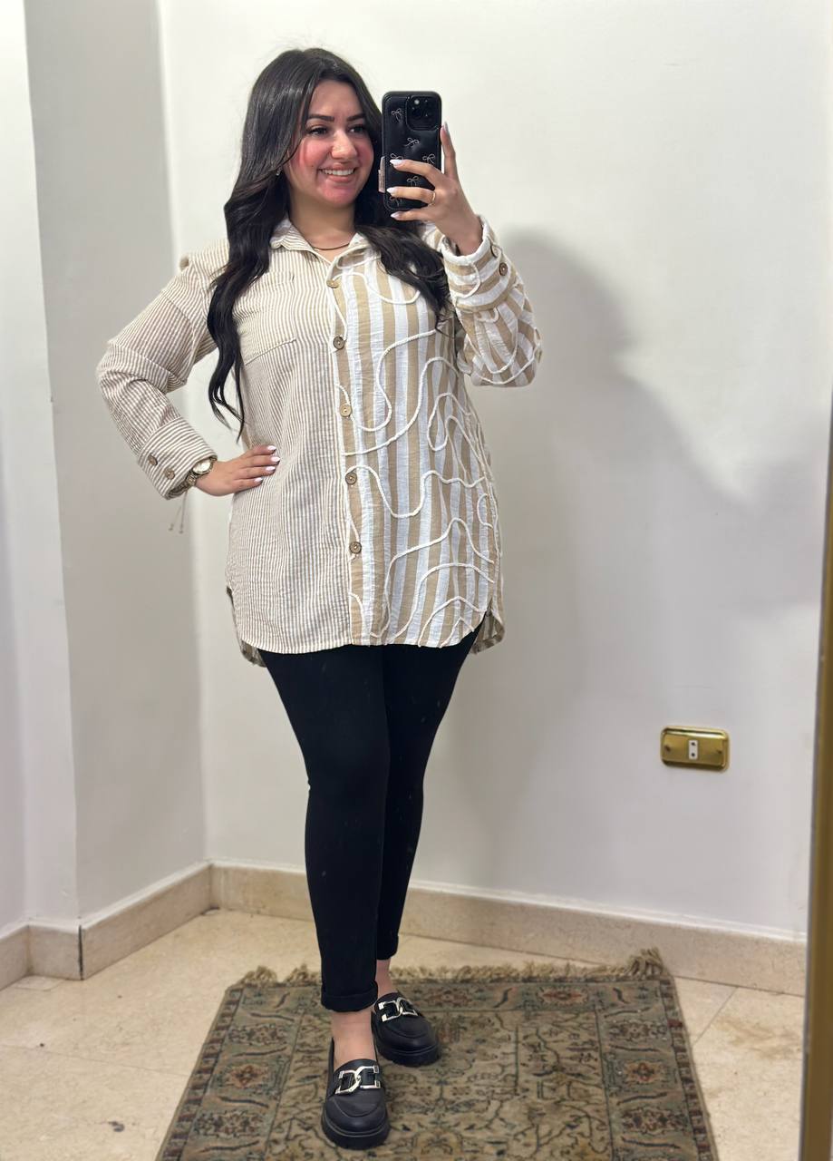 Artistic Multi-Stripe Textured Chemise