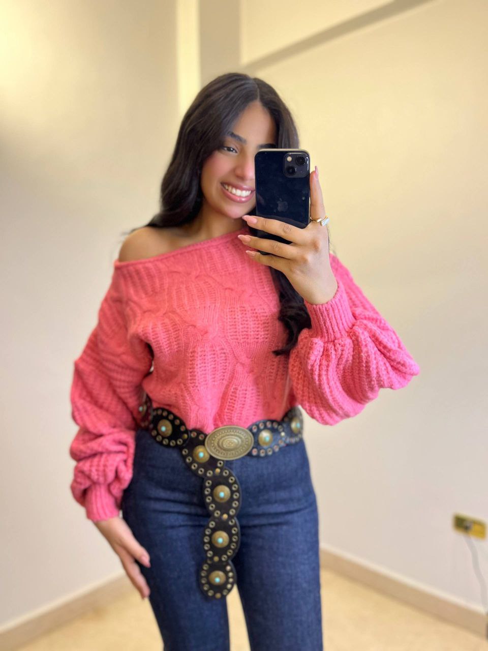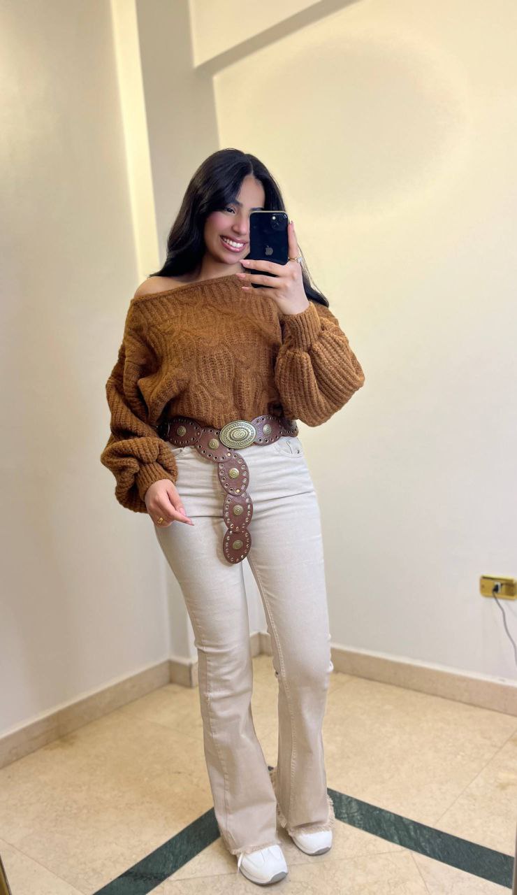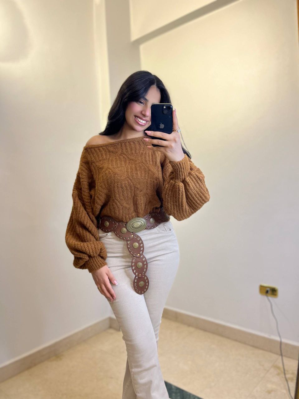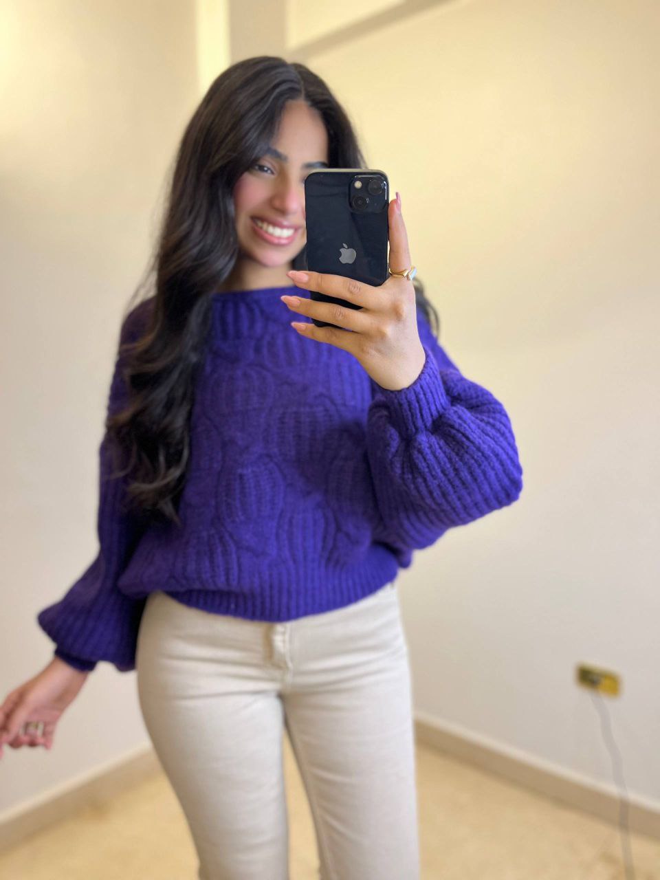 A timeless cable knit sweater designed for effortless everyday elegance. Featuring a classic round neckline and intricate textured knit details across the front, this piece offers both warmth and style. The relaxed fit with slightly voluminous sleeves adds a modern touch, making it perfect for layering or wearing on its own. Pair it with skirts, jeans, or tailored pants for a chic casual-to-smart look.