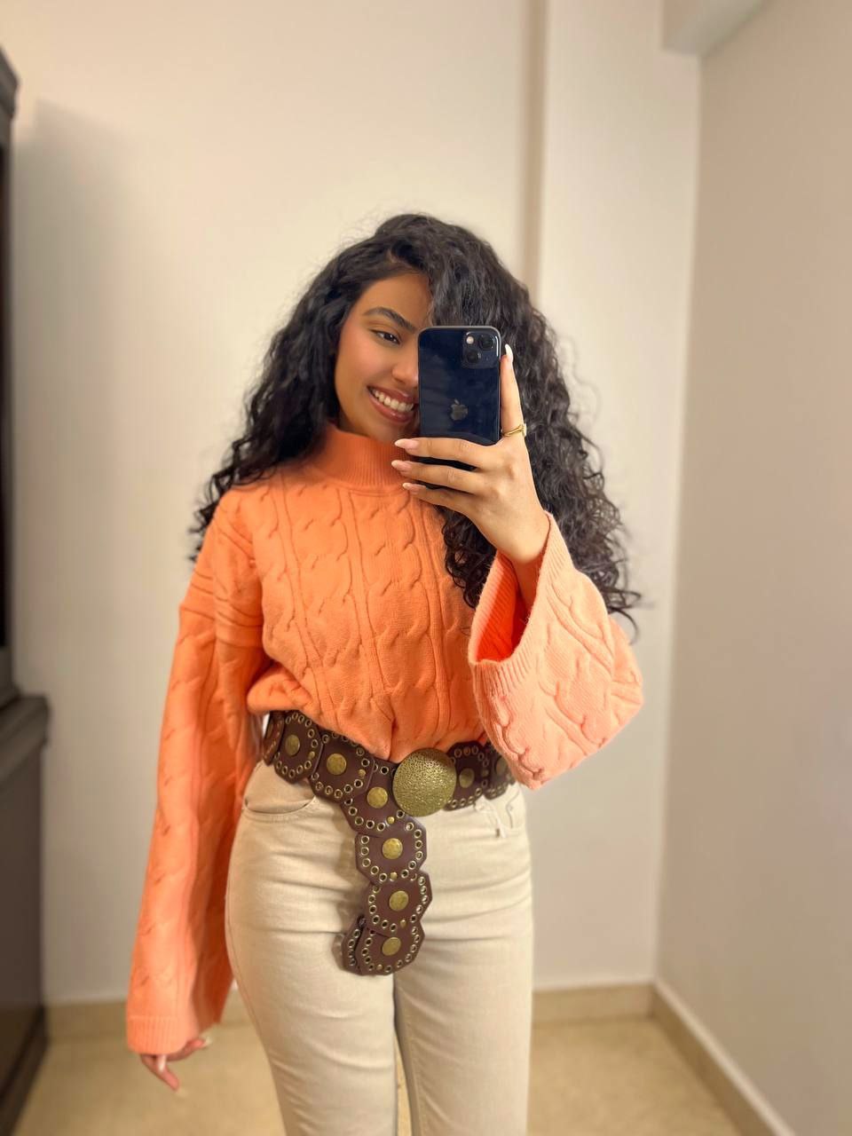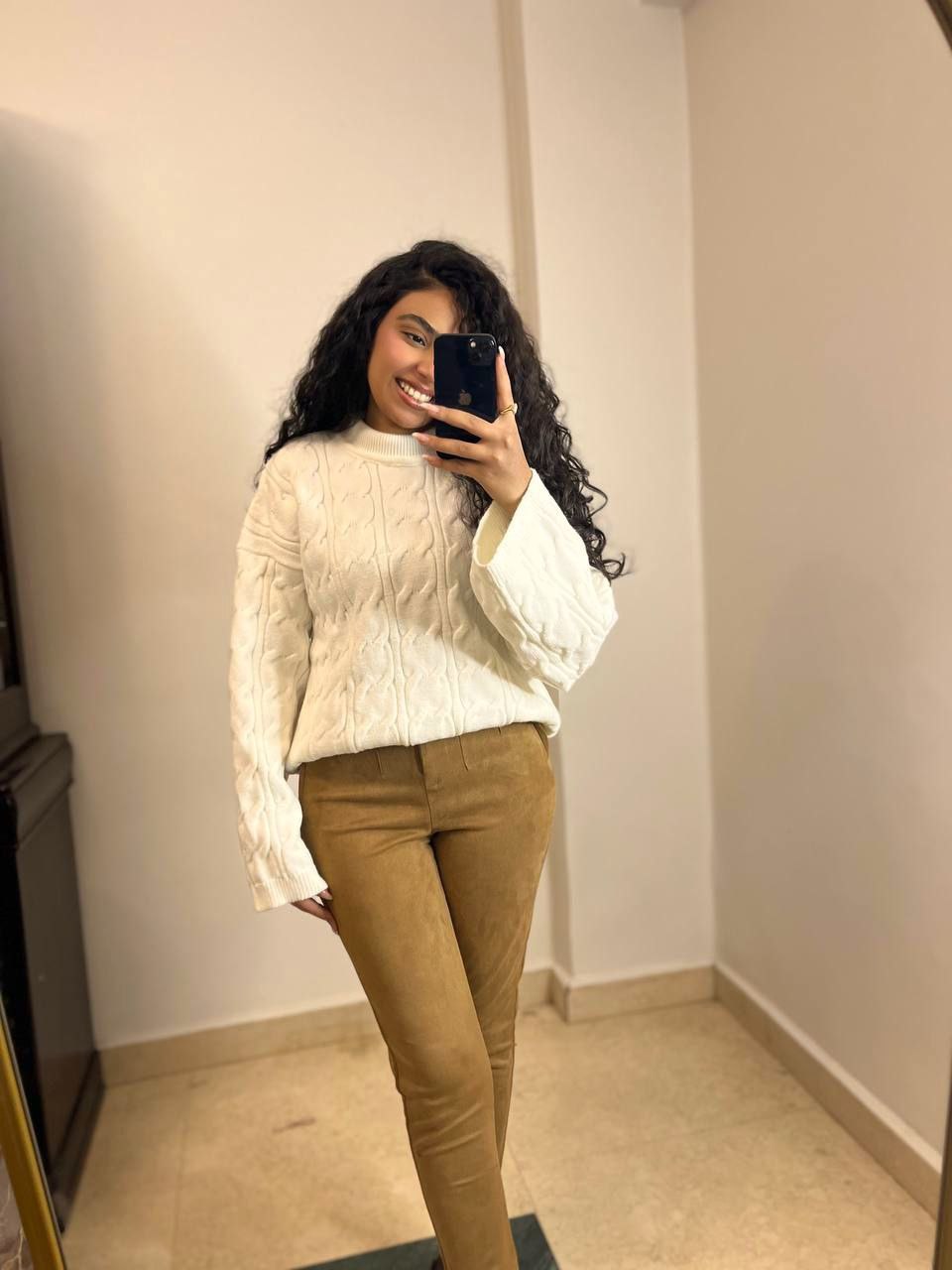 A classic cable knit sweater featuring a textured braided stitch that adds timeless charm and depth to the design. Made from soft, warm knit fabric, it offers comfort and coziness for colder days. Perfect for everyday wear, this sweater pairs effortlessly with jeans or skirts for a stylish and elegant winter look.