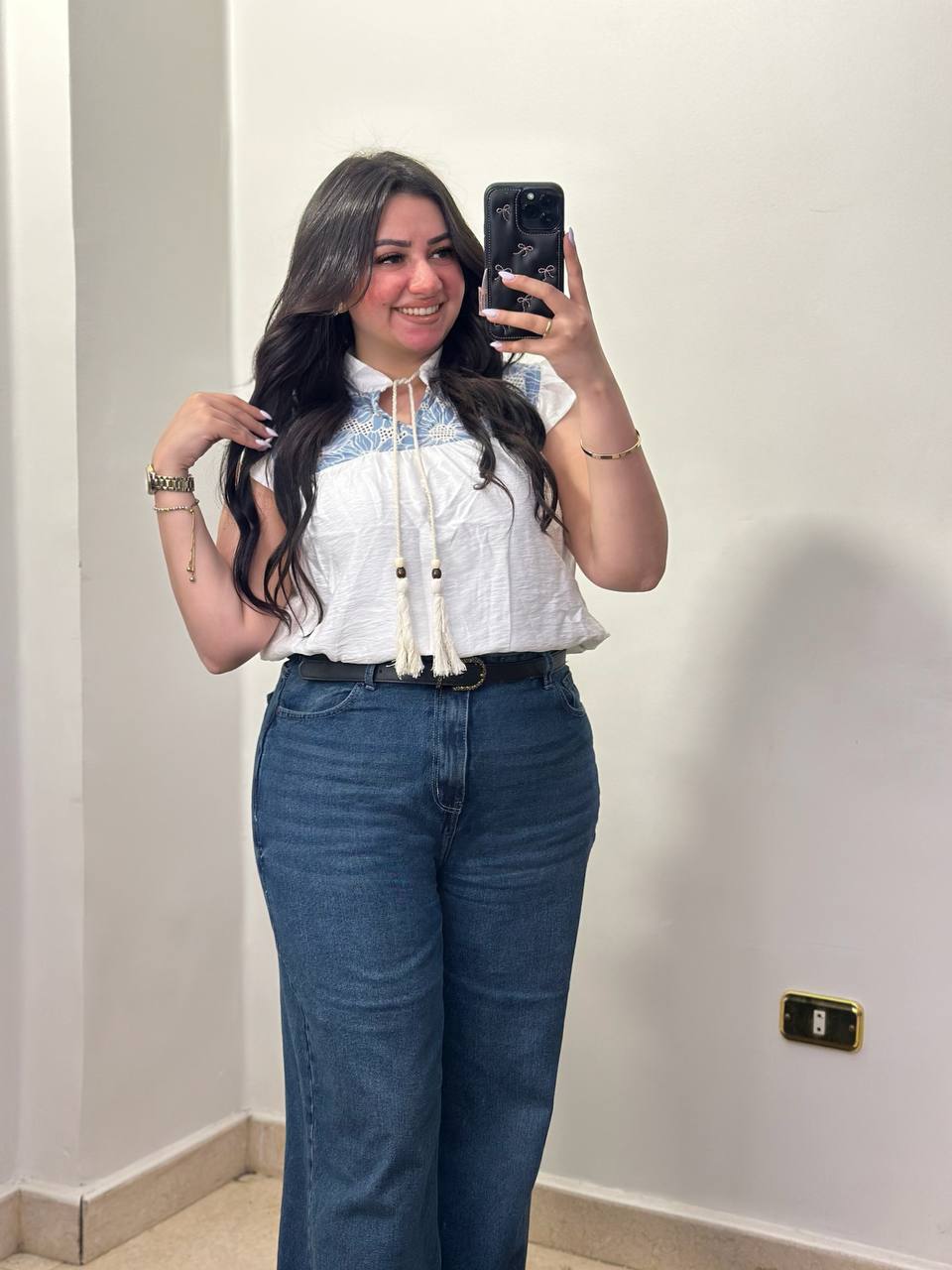 The embroidered upper panel enhances the design with intricate detailing, while the soft, lightweight fabric and gently ruffled cap sleeves create a flattering and airy finish. Perfect to pair with jeans or tailored pants for a chic everyday outfit. ✨