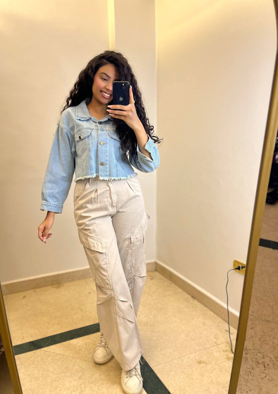 A stylish short denim shirt crafted from soft, high-quality denim. Features a comfortable fit and a versatile design that can be worn open or buttoned up. Perfect for casual, everyday looks and easy to pair with jeans, skirts, or leggings.