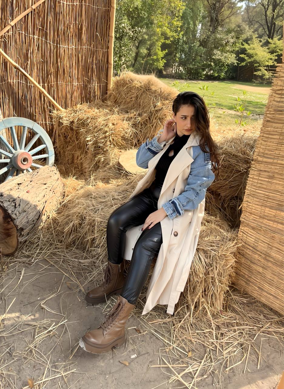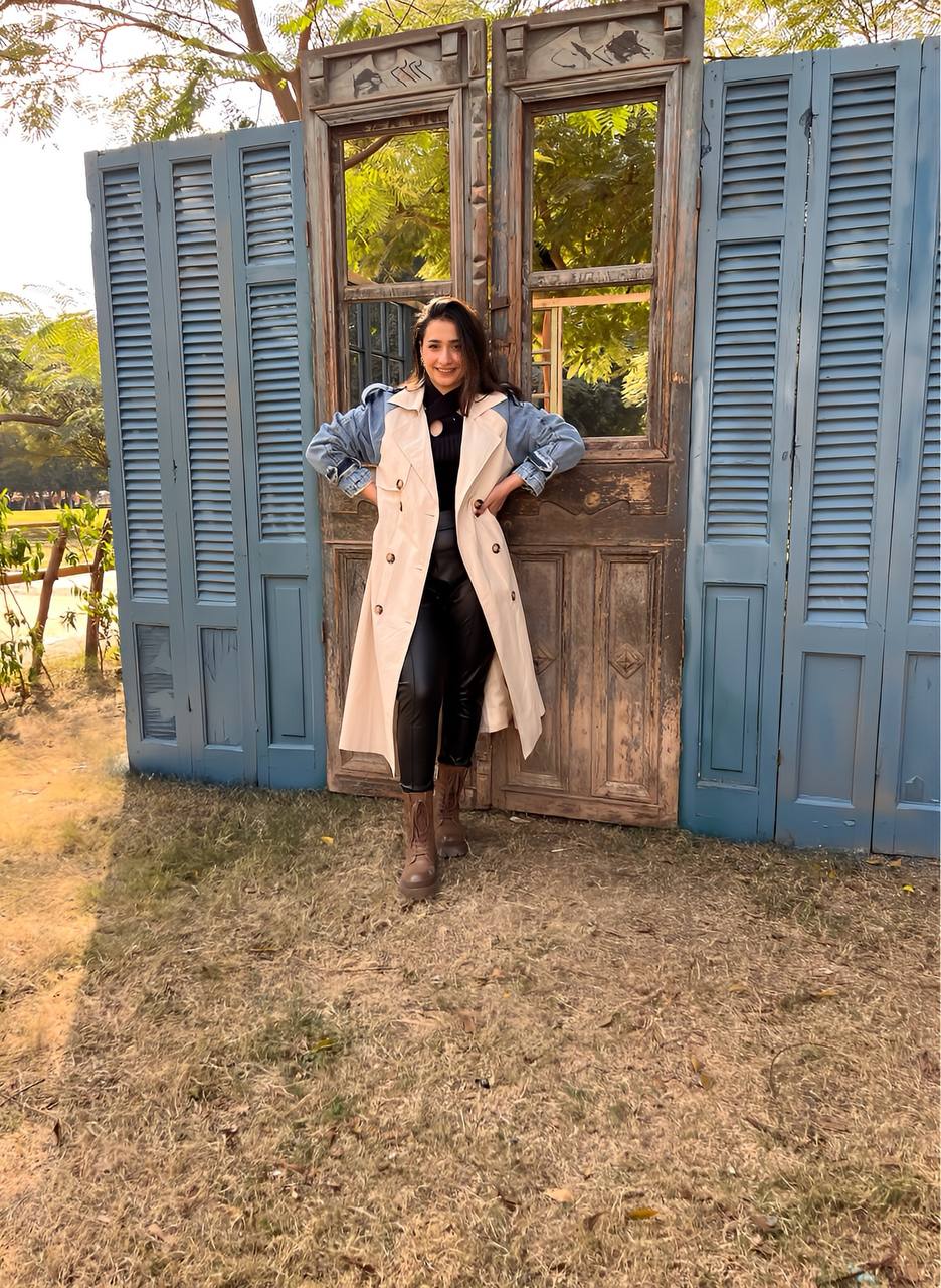 Trench Coat with Denim Long Sleeve